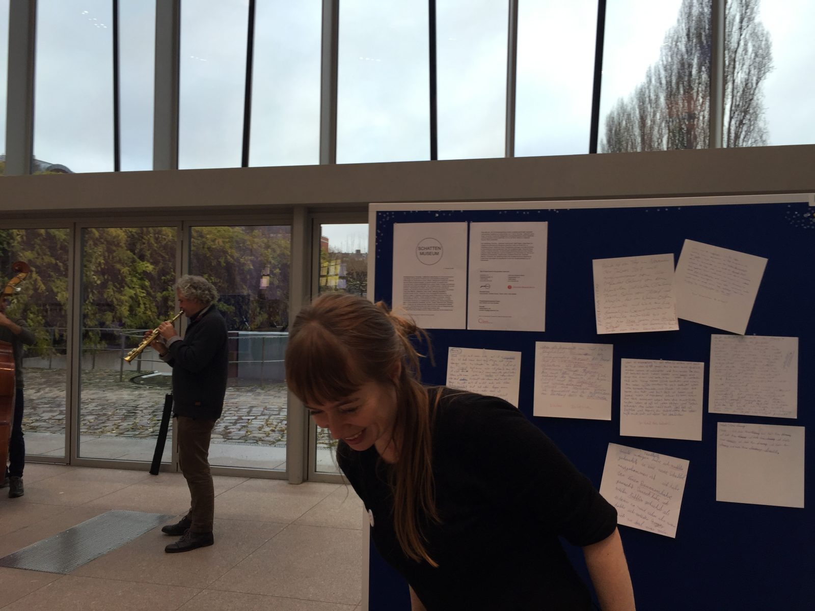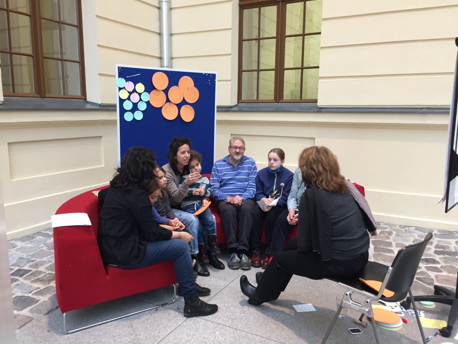 Die Museumsdirektorin hatte eine Station und bei ihrer Station haben verschiedene Leute Ideen gesammelt, wie man das Museum verbessern kann.