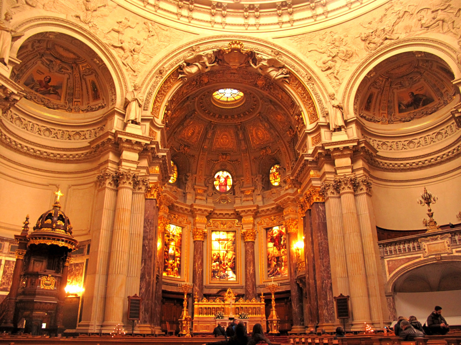 Im Berliner Dom mussten wir erstmal Schlange stehen und Eintritt zahlen, was uns nicht so gefallen hat. Die Arbeiter im Berliner Dom waren nicht sehr freundlich, weil die einige von uns beschuldigten, dass wir Unterschriften für etwas sammeln. Sie haben den Sicherheitsdienst gerufen, aber wir haben es in Ruhe geklärt gehabt. Sonst durften wir uns im Dom umschauen, Bilder machen und uns einfach mal entspannen.